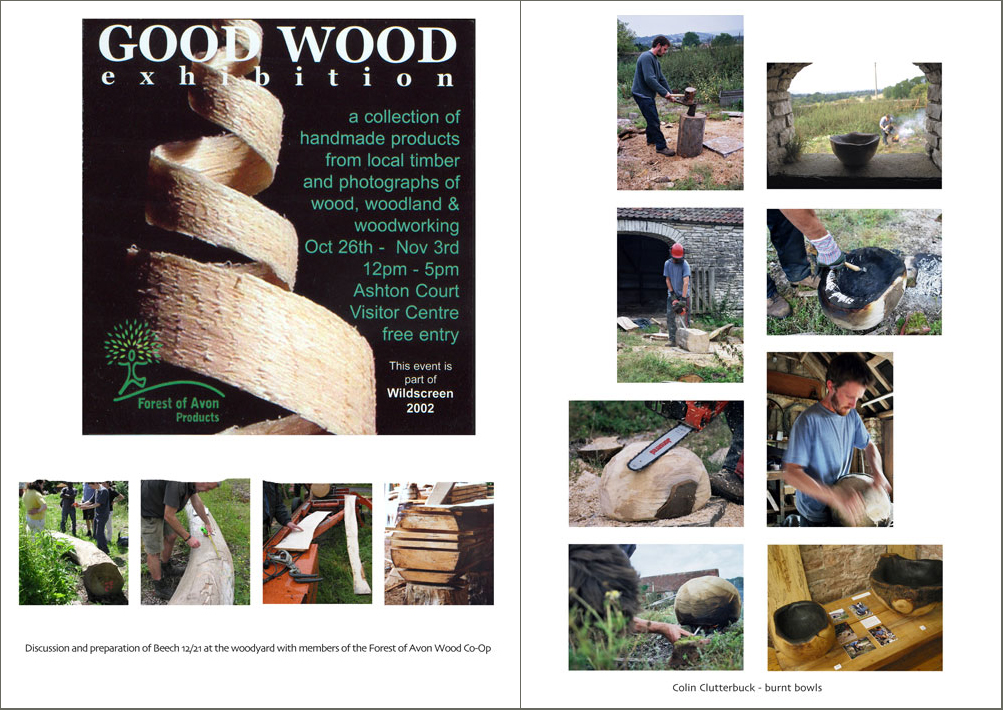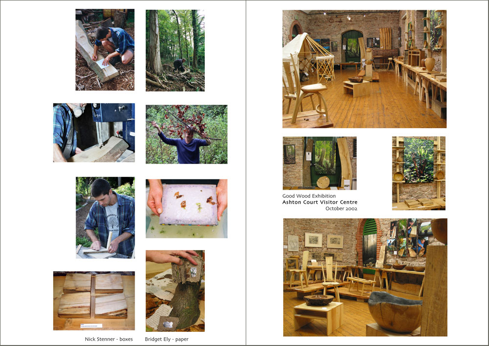 The page below is a later addition to the collection of products created from the felled beech. Lindy had made prints of sections of the beautiful woodblock she’s cut as seen above, but until 2009 had never printed the entire block, but some fine silk came her way and I went to help with the printing process. We then took it to Tanpit Woods and hung it in the favourite picnic spot as part of a family birthday celebration