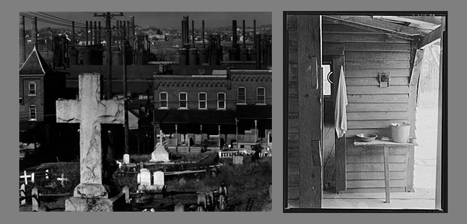 (Credits for above images: Graveyard and steel mill, Bethlehem, Pennsylvania by Walker Evans 1935; Washstand, Alabama, by Walker Evans 1935 or 6)