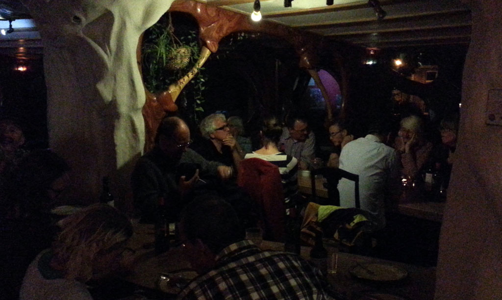 The day concluded with a companionable meal in a very different cafe – the cosy, carved wood ‘den’ of St Werburgh’s Farm Cafe, where the evening included a live music performance inspired by and including samples of sounds gathered during the day.