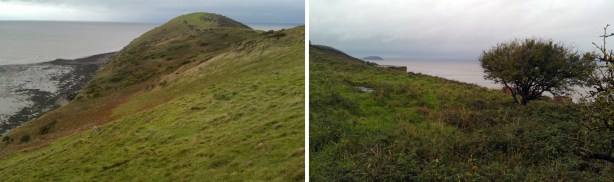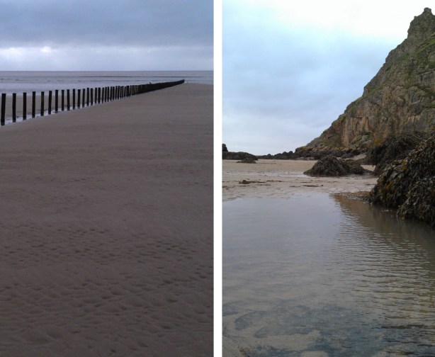 We left the warmth of the cafe with its elemental views for a stiff climb in strong wind to the top of Brean Down with expansive views across to Wales then a welly-booted paddle amongst the rocks on the wet sand of the long, long beach.