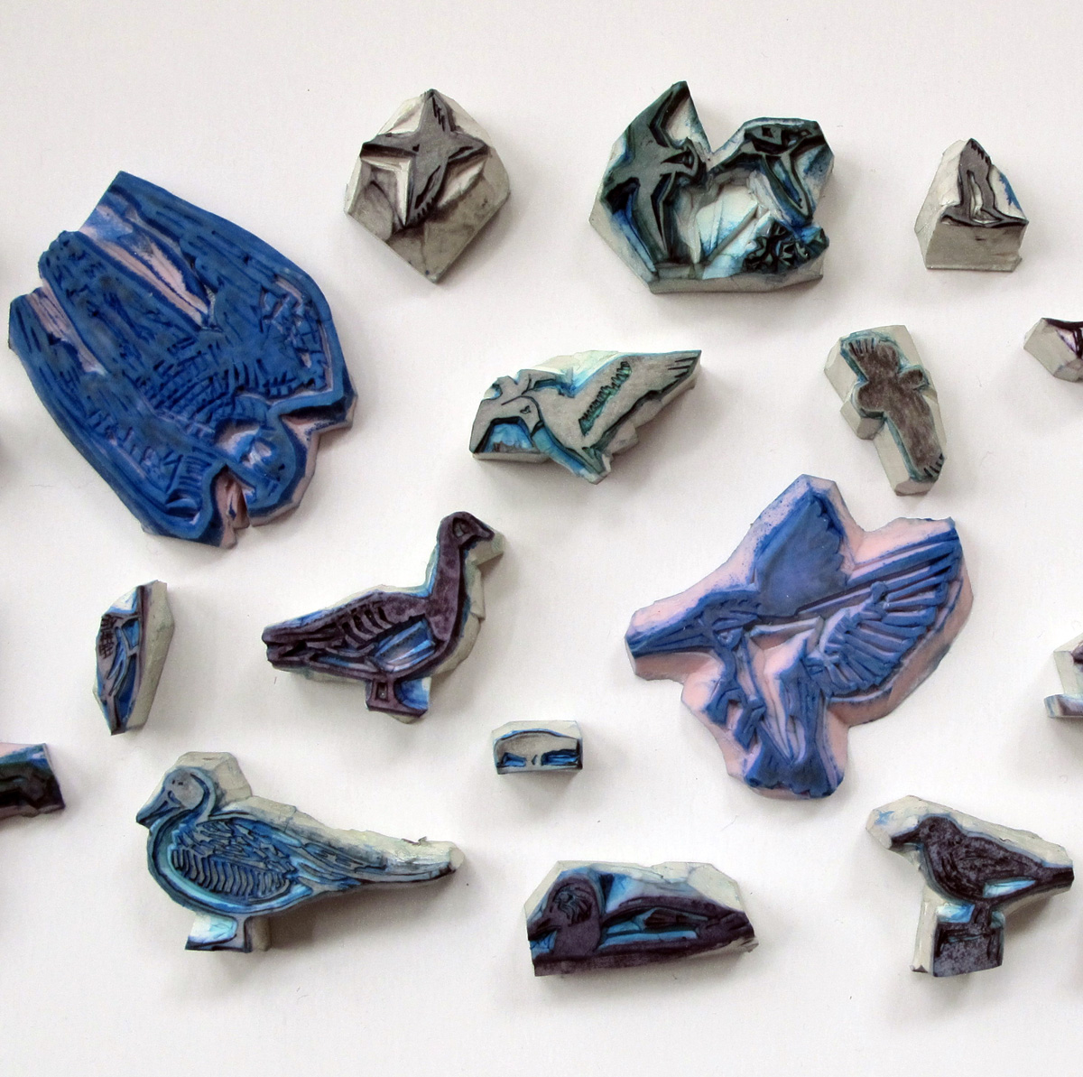What’s remarkable about these sculpted erasers is that even at only 6 or 7 mm long, it’s possible to identify most of the birds, not just because of the detail, but from the character of the creature she’s somehow managed to convey with some deft cuts of the scalpel blade.