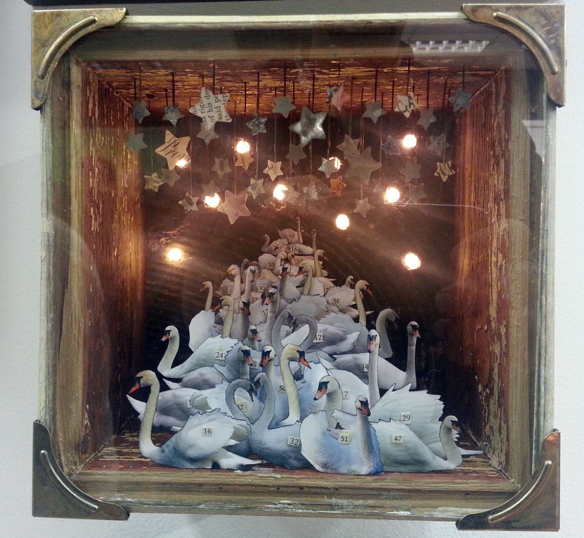 swans-and-stars Published May 24, 2014 at 1200 × 1107 in 7. The Woods, box art – Sticks, signs and leaves at Fringe Arts Bath ← Previous Next →