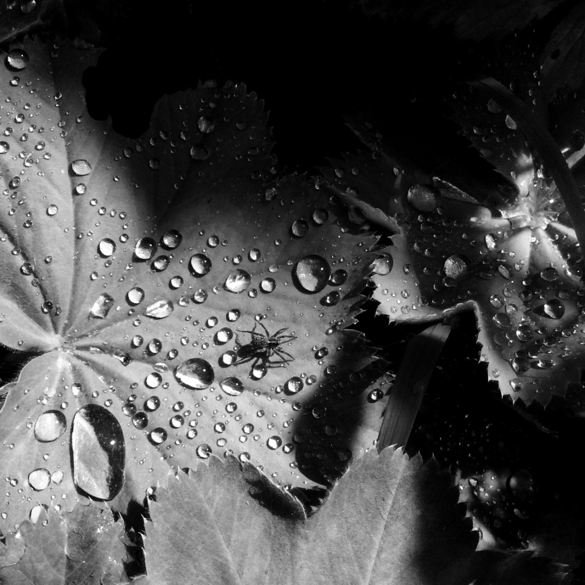 rain-drops-spider-on-ladies-mantle-web Published September 29, 2017 at 1280 × 1280 in Black and White ‘photo challenge’ – sketchbook ← Previous Next → Day 6