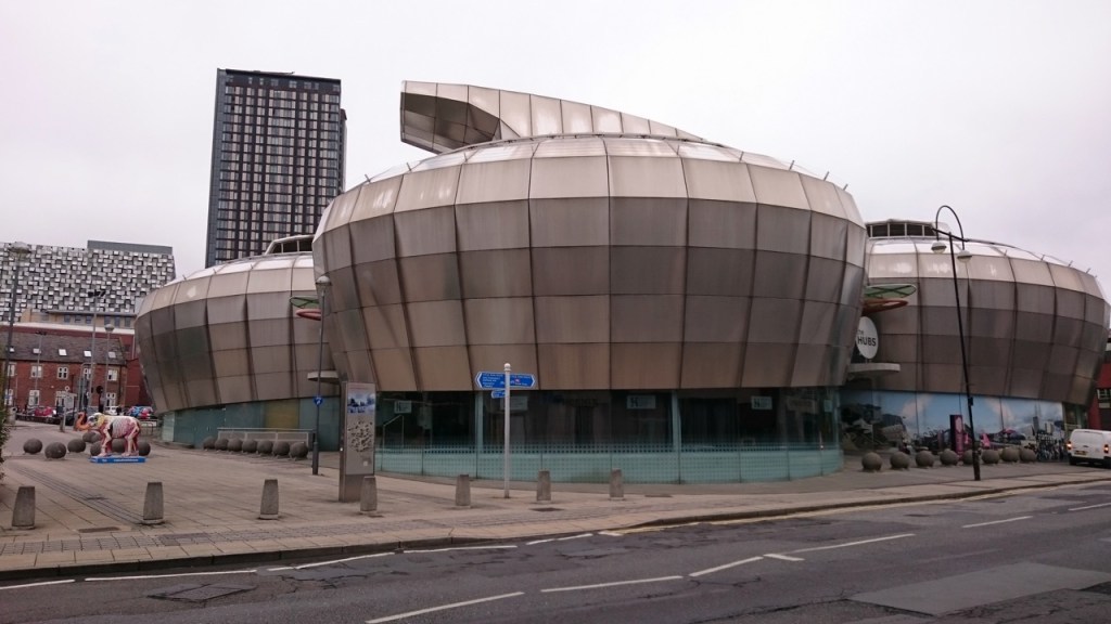 Above: Bristol’s not the only place for graffiti! While there’s some renovation and refurbishment in the city there’s a surprising number of derelict buildings and empty ground in the centre of Sheffield. ‘The Hubs‘ – built as the Centre for Popular music in 1999, it closed the following year due to lack of interest! Now Sheffield Uni’s Student Union HQ. The Showroom – originally a car showroom opened in 1936, now a cinema and Creative Workspace – similar to Bristol’s Watershed. I don’t think Sheffield’s ever been a lovely place but it’s been further blighted by ineffective road schemes. On the horizon are the famous/infamous Park Hill flats.