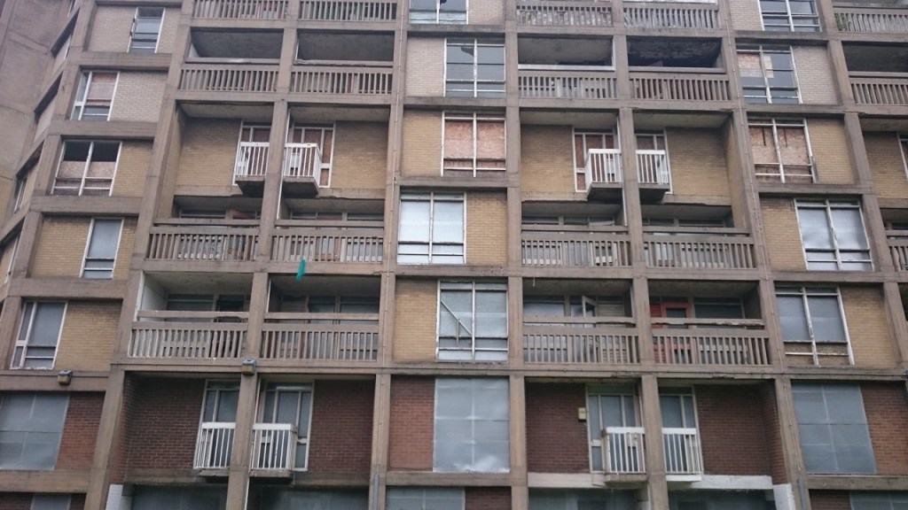 However, a few decades later the flats were hosting new gangs, involved in drug-related crime. Territorial disputes arose as members of one gang would adopt a stairwell and fight those from other gangs who’d appropriated nearby shared spaces and when the lifts didn’t work, getting back to your top floor flat with shopping and kids became a miserable ordeal. Tenants became hard to find and the by the 90s it was emptying and the fabric decaying.
