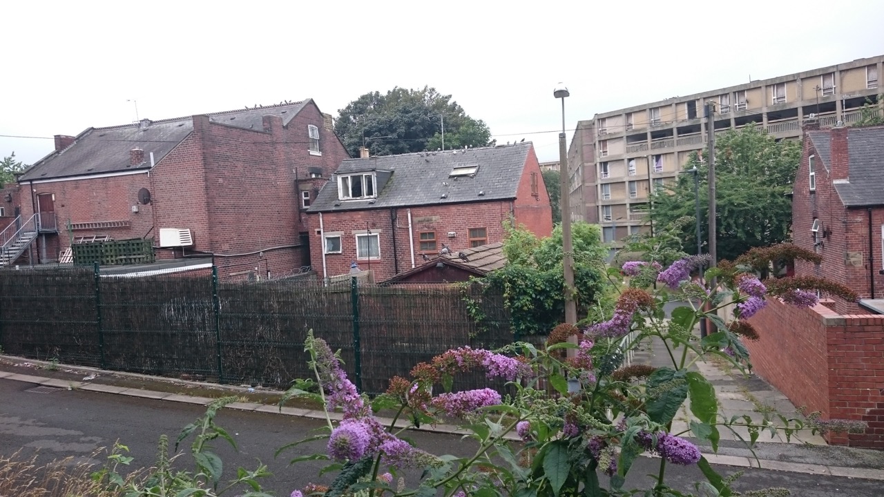 The flats’ predecessors were the home of some of Sheffield’s notorious gangs in the early 20th century (here’s an article written by Will Milner). Prior to that (1861) our relative, James Frith, now a widower, had moved from Heeley to live with his mother-in-law, 3 children and 4 other people in a small house on a road called Rough Bank; see an archive photograph of one of the houses in this area here. Rough Bank is now part of the grounds these flats are built on.