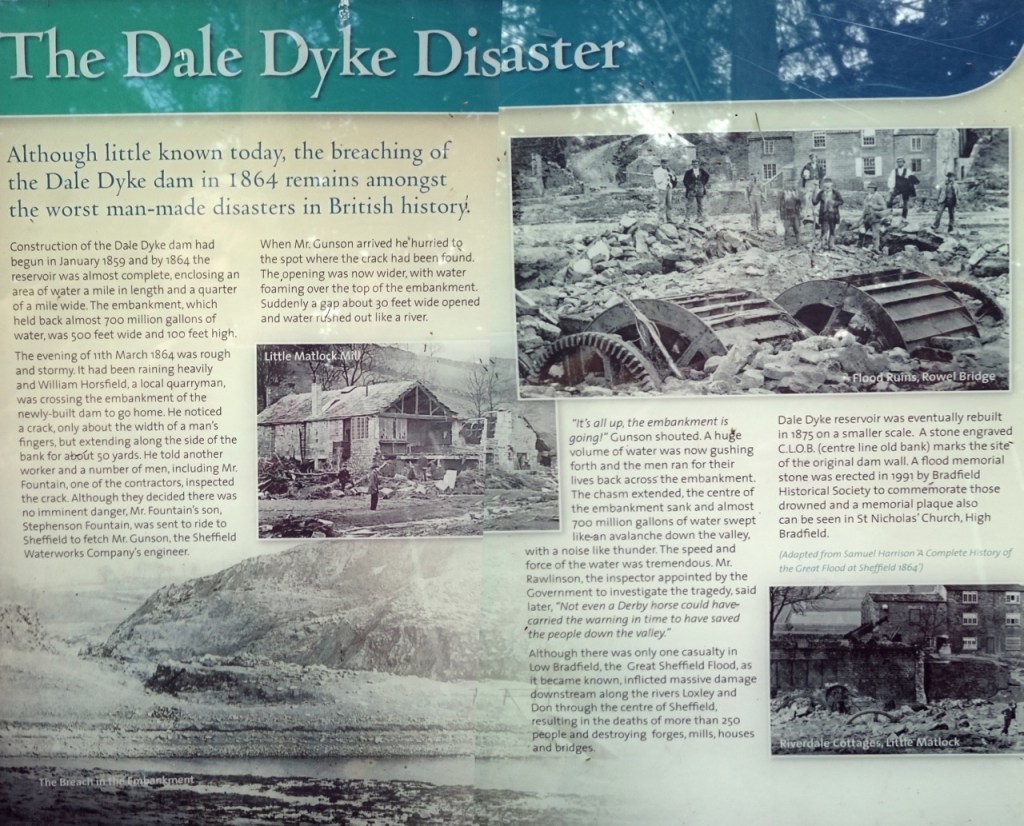 Eight miles or so downriver from the dam is Malin Bridge where James Frith lost his life at the Stag Inn when it was destroyed in the flood. The crumpled photo in a display case by Malin Bridge is the only evidence of this momentous event that killed 102 people just in this area.