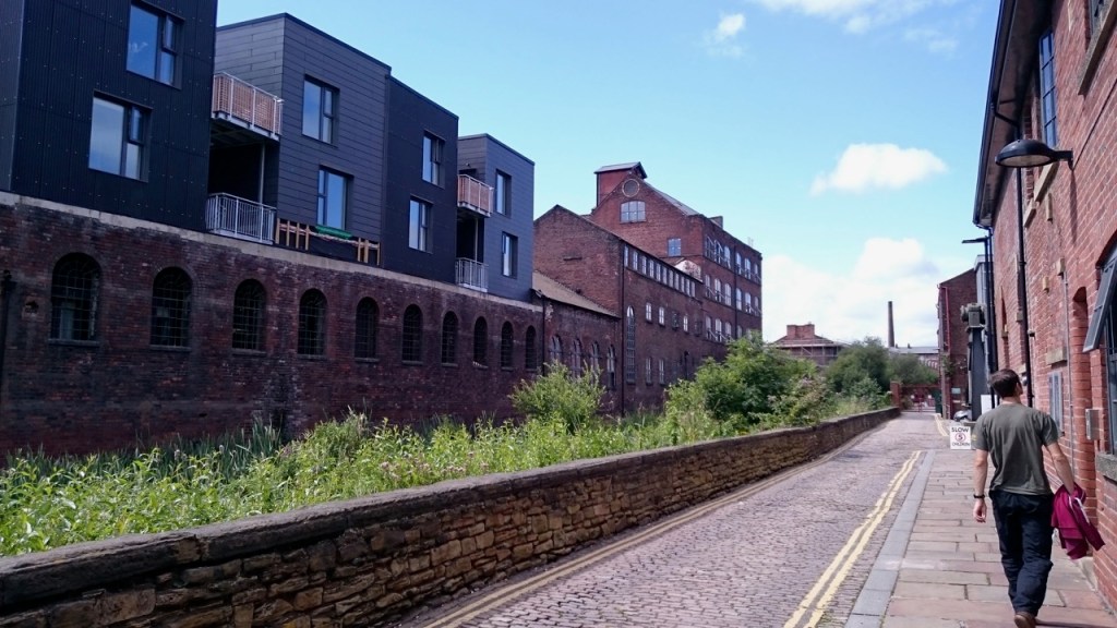 Above: There are still a few pockets of Sheffield’s past that can be seen around the Canal Basin and Kelham Island area by the River Don; The Straddle, was used for loading grain from hoppers onto barges underneath the building.