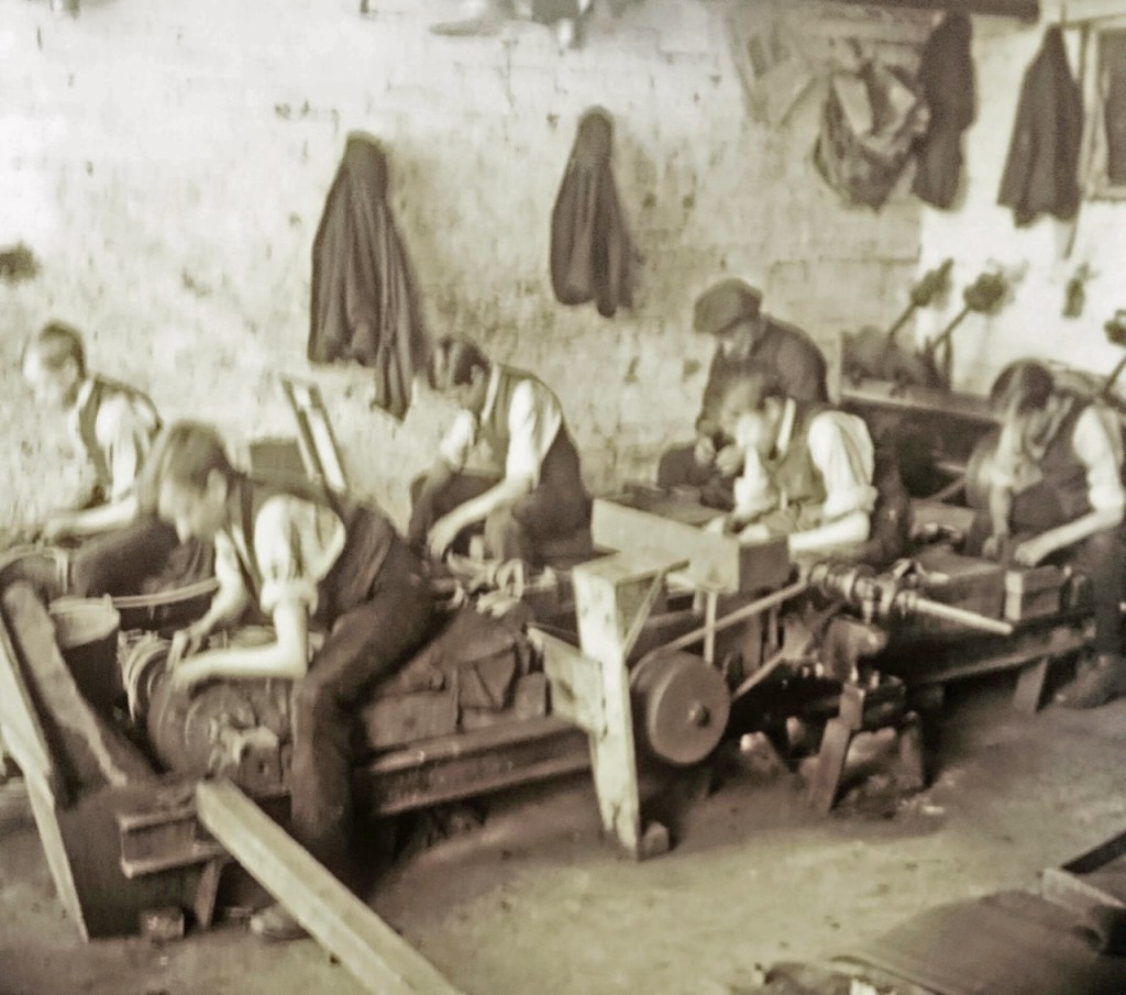 “In Sheffield wages are better, and the external state of the workers also. On the other hand, certain branches of work are to be noticed here, because of their extraordinarily injurious influence upon health…By far the most unwholesome work is the grinding of knife-blades and forks, which, especially when done with a dry stone, entails certain early death. The unwholesomeness of this work lies in part in the bent posture, in which chest and stomach are cramped; but especially in the quantity of sharp-edged metal dust particles freed in the cutting, which fill the atmosphere, and are necessarily inhaled. The dry grinders’ average life is hardly thirty-five years, the wet grinders’ rarely exceeds forty-five.”