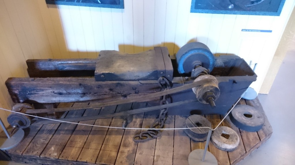 Above: Old industrial Sheffield at Kelham Island in the River Don. Now an industrial museum, it was disastrously flooded and closed for two years after the Don burst its banks in 2007. Some of the adjacent industrial buildings are now being converted into or rebuilt as expensive flats, but preferable to losing the architecture to wholesale demolition. The Bessemer convertor, one of only three left in the world is an item largely responsible for the growth of Sheffield’s steel industry. The truly awesome River Don Steam Engine was used for rolling out steel plate, this monstrous machine was being demonstrated on our visit and it sounded and felt like an earthquake as it’s pistons thumped and thundered. But it was the displays about the grinding and sharpening of steel tools that brought home the miserable and dangerous work done by so many men in Sheffield up to the mid 19th century when mechanisation began; scythe grinding was the occupation of our relative James Frith at the time of his death (more on this to follow) in 1864, age 34.