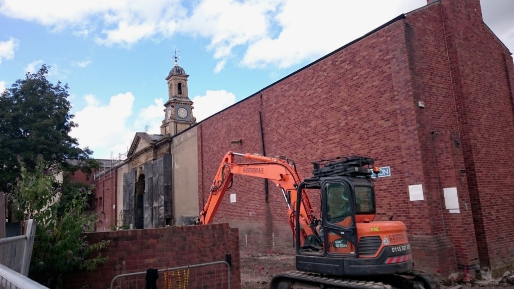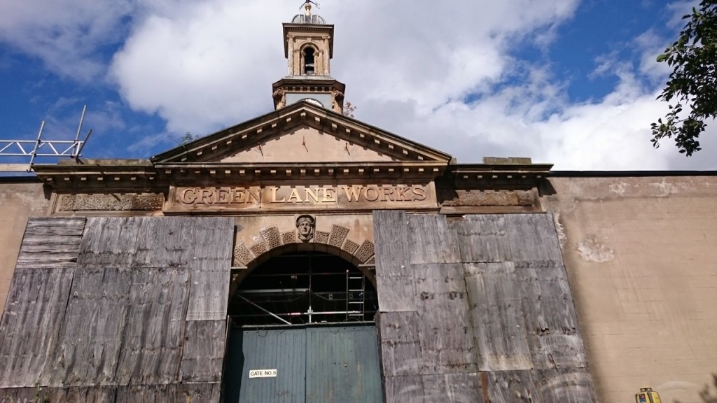 Green Lane Works, “the most spectacular survival of factory architecture in the city” (Nicholas Pevsner). The pedimented entrance with bell tower is listed but the remaining buildings were being converted into flats at the time we visited, now complete I believe. High-tech, efficient living with ‘friendly neighbours and good community’ is what you buy into on the site of the Green Lane Works.