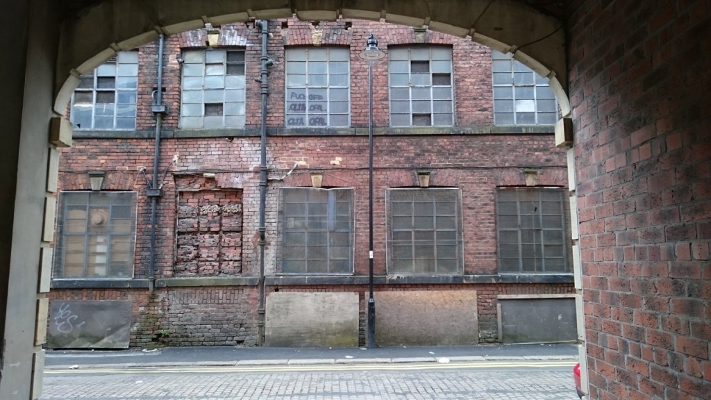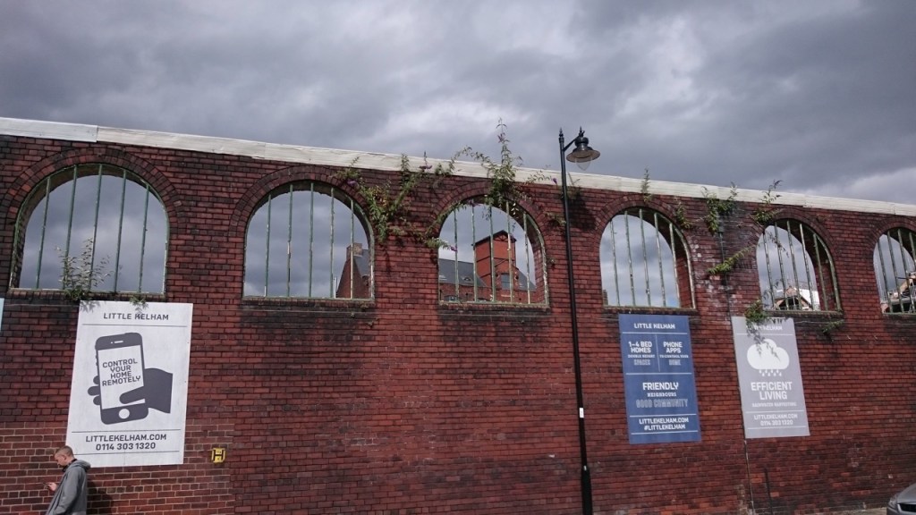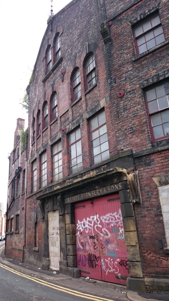 Our, almost final, visit was to the area that George and Elizabeth Lockett (my namesake until I married) lived and worked. It’s on the River Don, just along from the Industrial museum on Kelham Island and is probably the last remaining bit of old industrial Sheffield; but parts of it are currently being re-developed, so I was pleased to catch sight of this dour location before it vanished forever.
