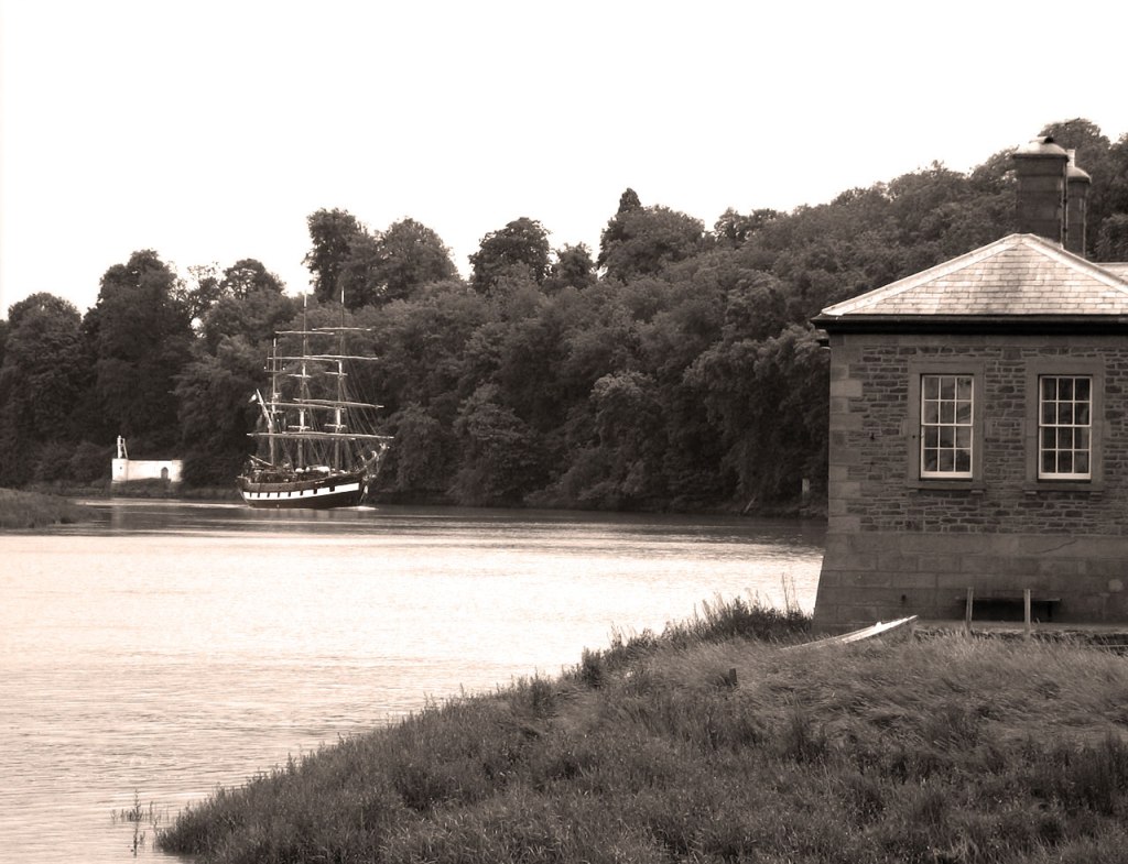 The once white (now much grafittied) folly would have served as a useful marker on the river for shipping and still bears a navigation light named Adam and Eve. It’s hard to imagine how busy this river once was with dozens of ships like the 1847 Jeanie Johnston shown in the photograph below, passing the Adam and Eve on the Hung Road in 2006.