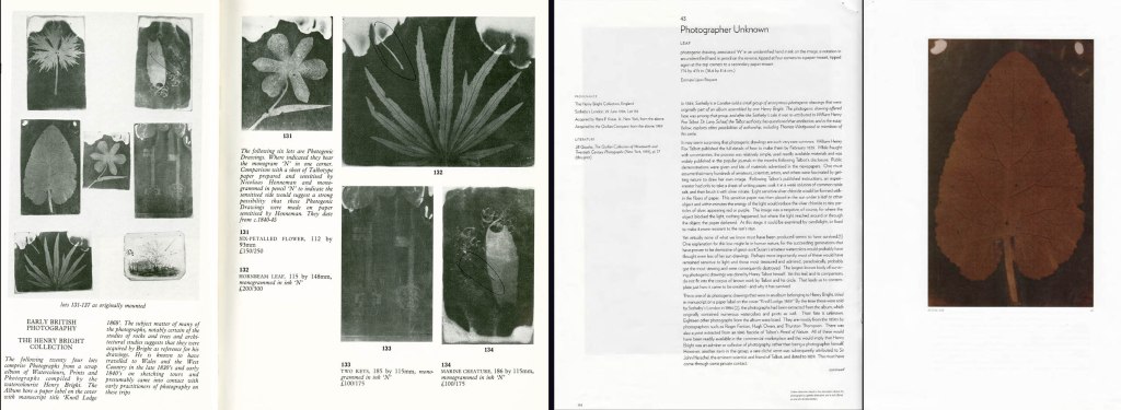 - Information on Sarah Bright’ 1839 photograph, ‘The Leaf’