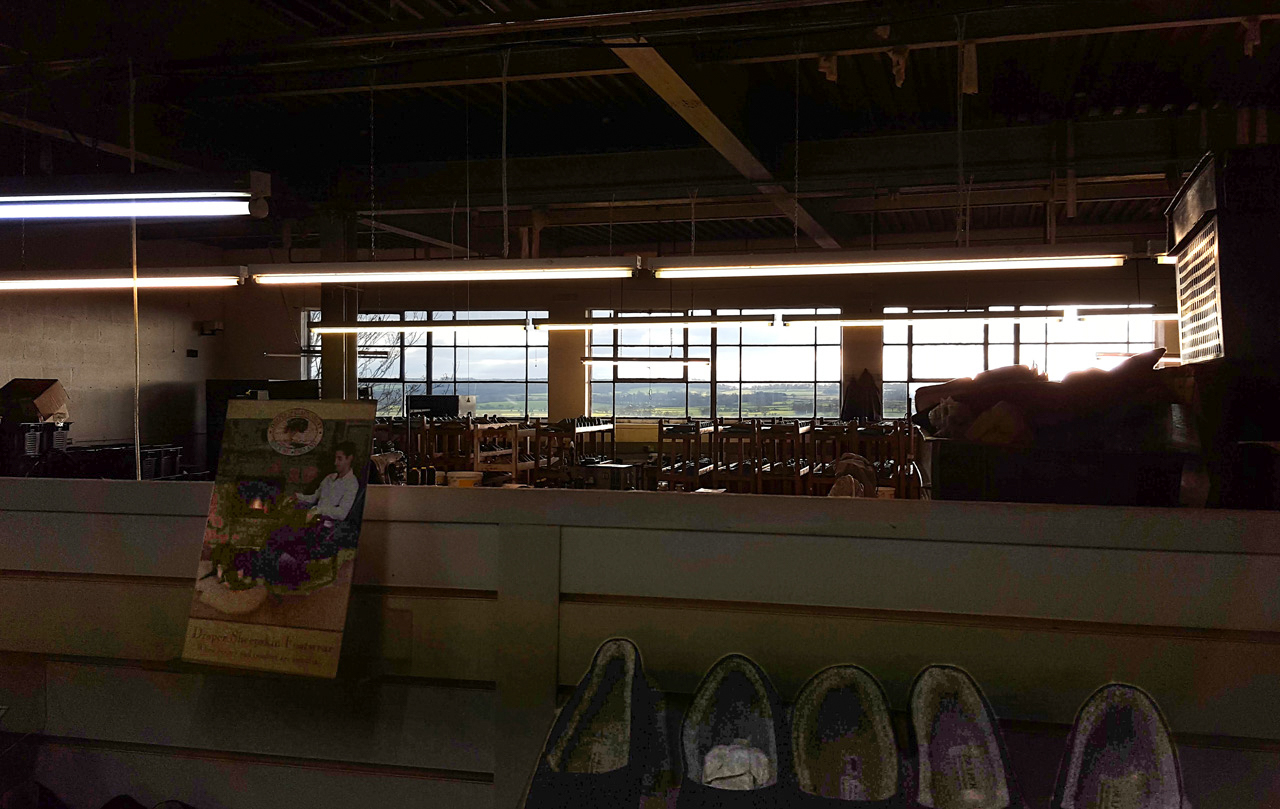It was a Saturday which may explain why most of the industrial sewing machines were idle and only a couple of blokes could be seen tinkering with things, but behind us laid out on tables and glass shelves was evidence of their weekday work – shoes, slippers and sheepskins – in designs that might mostly appeal to octogenarians, or maybe retro fans, with printed testimonies and framed newspaper cuttings featuring the factory hanging on the wall